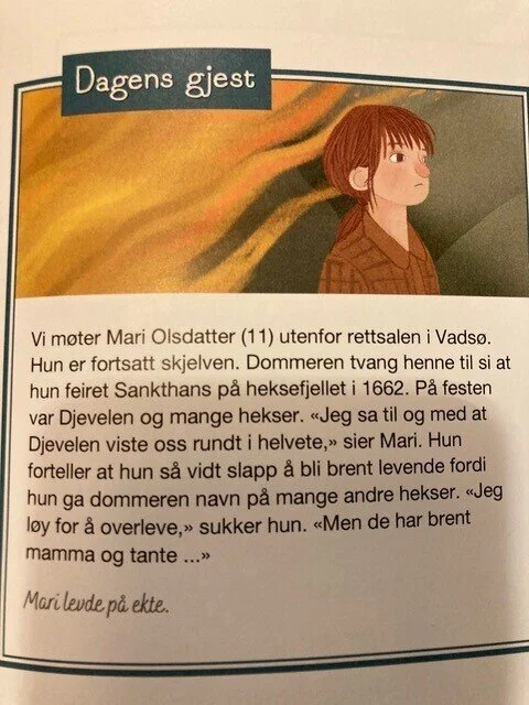 I hver av bøkene er det også gjort plass til mange Siste nytt-spalte + tolv møter med barn som levde i epoken, både barn som levde på ekte og barn som kunne ha levd på ekte. Barna får lese om Mari Olsdatter og Kåre Willoch.